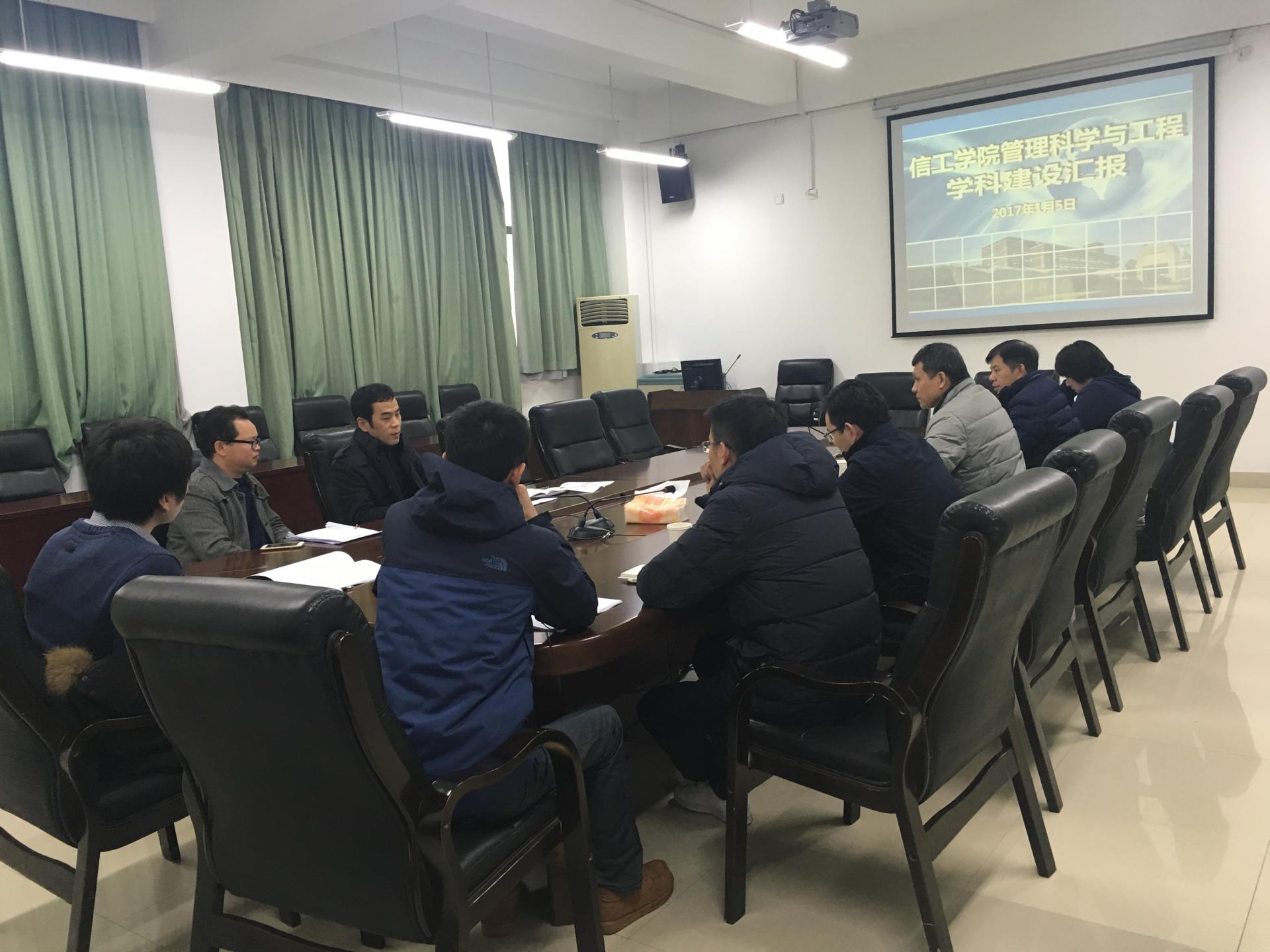 张帅副院长首先介绍了太阳成管理科学与工程学科的发展历史、建设成果、存在的短板以及未来的建设目标和举措。张雷宝院长肯定了太阳成近年来在学科人才引进、学科方向建设、学科成果国际化、研究生培养等方面所取得的显著成效,同时指出了管工学科建设中存在的问题和改进的方向,希望信工学院不断提升管工学科建设水平,为实现“十三五”学科建设目标继续努力。陈星平副院长对管工学科后续发展提出了富有建设性的意见,并建议太阳成进一步凝练学科方向,突出我校管工学科的特色和优势。张文宇院长对张雷宝院长一行的调研和指导表示衷心的感谢,并表示学院将按照研究生院的要求进一步加强管理科学与工程学科建设力度,积极拓展特色研究方向,为我校经管学科的发展提供更加有力的支撑。