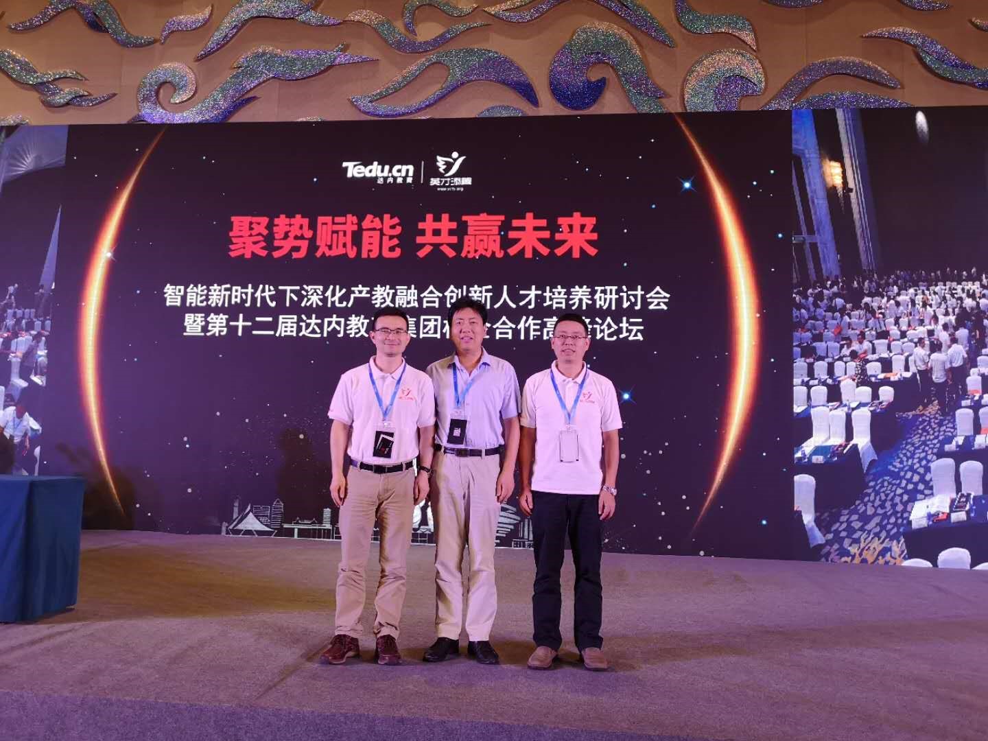 2018年8月14日,教育部学校规划建设发展中心指导,达内教育集团主办的“智能新时代下深化产教融合创新人才培养研讨会暨2018年第十二届达内集团校企合作高峰论坛”在山东青岛隆重召开。我校教务处副处长石向荣、信工学院副院长陈远高老师等参加了会议。会上教育部学校规划建设发展中心公布了首批“AI+智慧学习”共建人工智能学院项目试点学校名单,教务处副处长石向荣老师代表学校在入选院校的名单卷轴上签名。