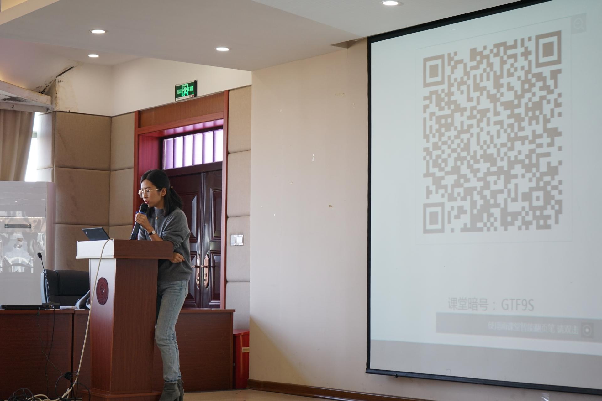 本次培训由现教中心骆靓婧老师主讲。骆老师就“雨课堂”的开发背景、特色功能、相对优势等方面做了详细介绍,并在现场演示了使用方式。