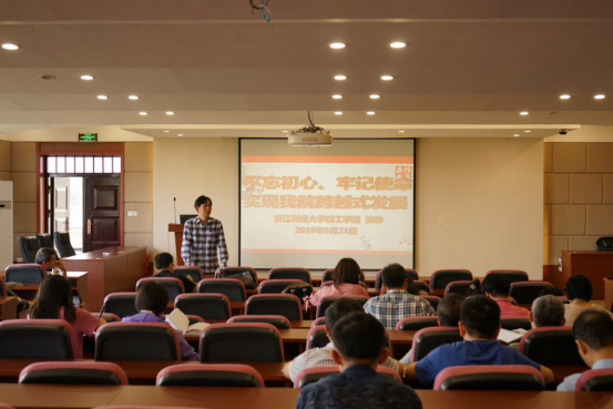 “不忘初心、牢记使命”主题教育是在全党范围内开展的主题教育活动,是推动全党更加自觉地为实现新时代党的历史使命不懈奋斗的重要内容。张帅老师指出,“不忘初心、牢记使命”不是停留在口头的标语,而是我们应该贯彻和执行的指导思想,是党的十九大精神的重要举措,是未来发展的重要基础。作为高校教师,我们共同的初心和使命是立德树人,培养优秀的社会主义建设者和接班人。张帅老师先后从教学、科研和学科三个方面指出我们学院取得的成果和其中的不足,并指出学院今后发展的目标和解决措施,参会教职工表示很受启发并且有了更加清晰明确的方向。