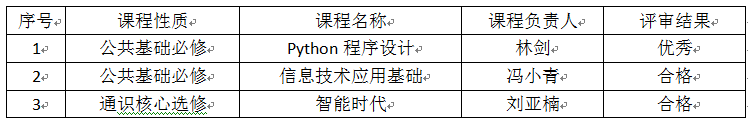 学院对2018年立项建设的《Python程序设计》等三门计算机公共基础课程与通识核心课程进行了验收评审。经评委会审议,确认《Python程序设计》等三门课程通过验收评估,并核拨项目剩余资助经费。具体评审结果如下: