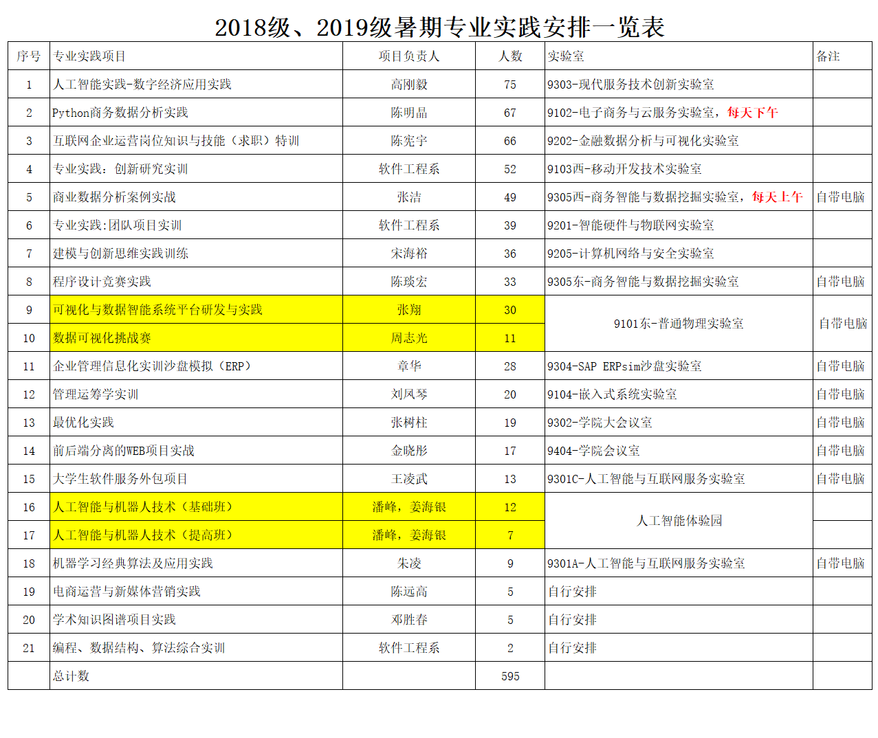 根据各位同学所申请短学期专业实践与学科实践,实验中心按排场地如下: