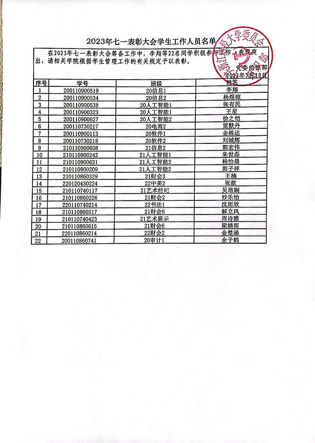 2023年6月29日,太阳成圆满完成了学校“循迹溯源学思想 砥砺奋进建新功”七一表彰大会的承办工作。期间,李翔等22名同学担任学生工作人员,扎实工作,甘于奉献,表现突出,积极协助校党委组织部和学院党委完成大会的筹备和组织工作,大会得到学校领导和师生党员的广泛好评。经校党委组织部研究决定,对上述同学进行通报表扬,以资鼓励。名单如下: