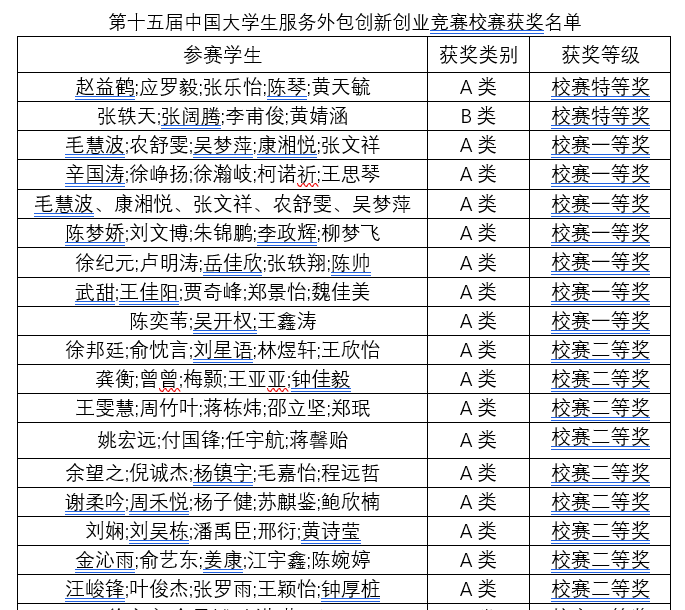 suncitygroup太阳成集团第十五届中国大学生服务外包创新创业大赛校赛已圆满结束,本次竞赛共有来自全校的227名同学报名参赛,最终提交有效作品32份,校赛全部奖项已经产生,现予以公示。