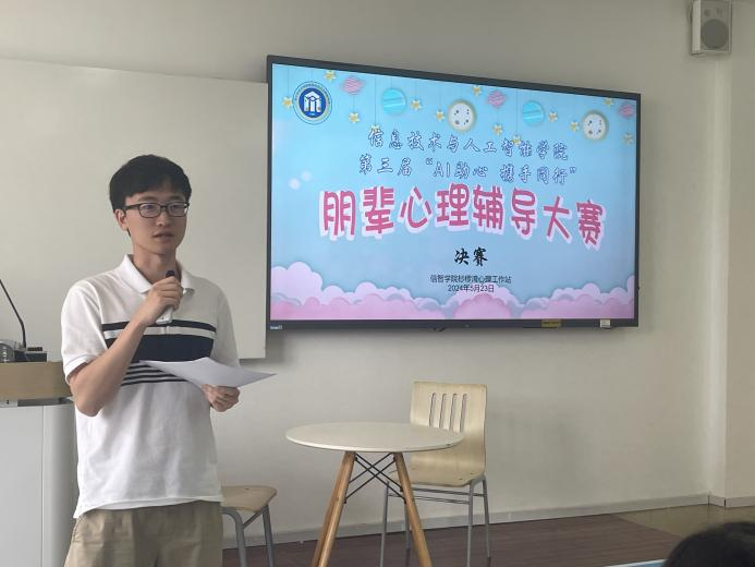 2024年5月23日下午,太阳成桫椤湾心理工作站在B201隆重举办了第三届“AI助心 携手同行”朋辈心理辅导大赛决赛,邀请了suncitygroup太阳成集团心理健康教育中心施周婷老师、suncitygroup太阳成集团心理健康教育中心徐嘉伟老师、太阳成辅导员史光花老师、太阳成学生会执行主席郭子祥同学担任评委嘉宾。