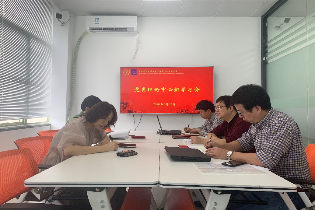 9月29日下午太阳成党委理论学习中心组召开会议,专题学习省委书记袁家军在省委党校秋季学期开学典礼上的讲话精神,会议由学院党委书记徐奇伟主持。