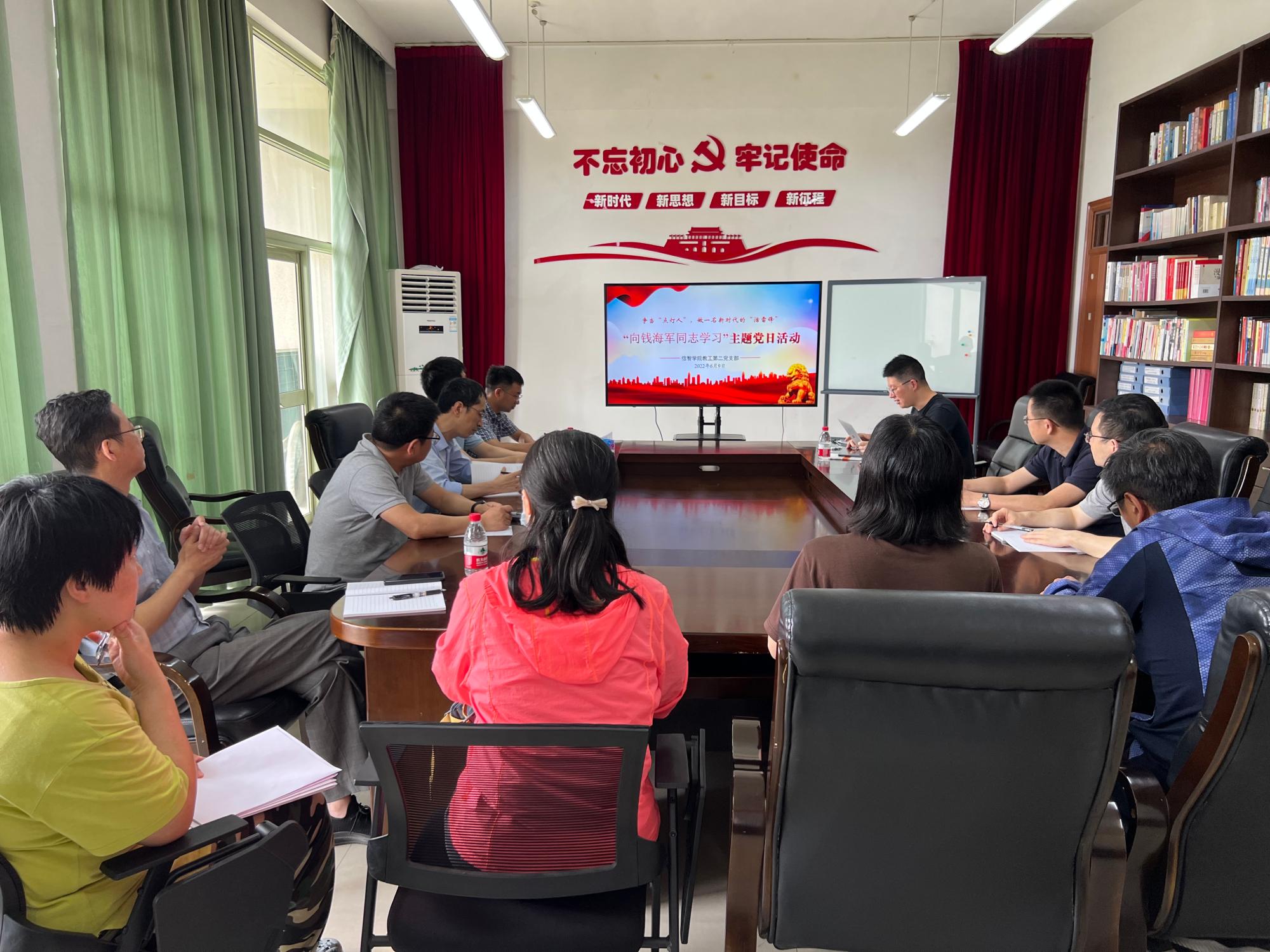2022年6月9日,太阳成教工第二党支部举办“向钱海军同志学习”主题党日活动。学院副院长陈远高及支部党员参加活动,活动由支部书记宋海裕主持,支部党员集体学习钱海军同志先进事迹。