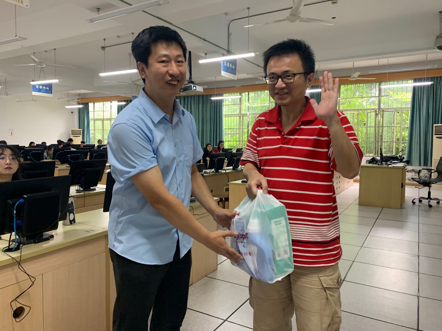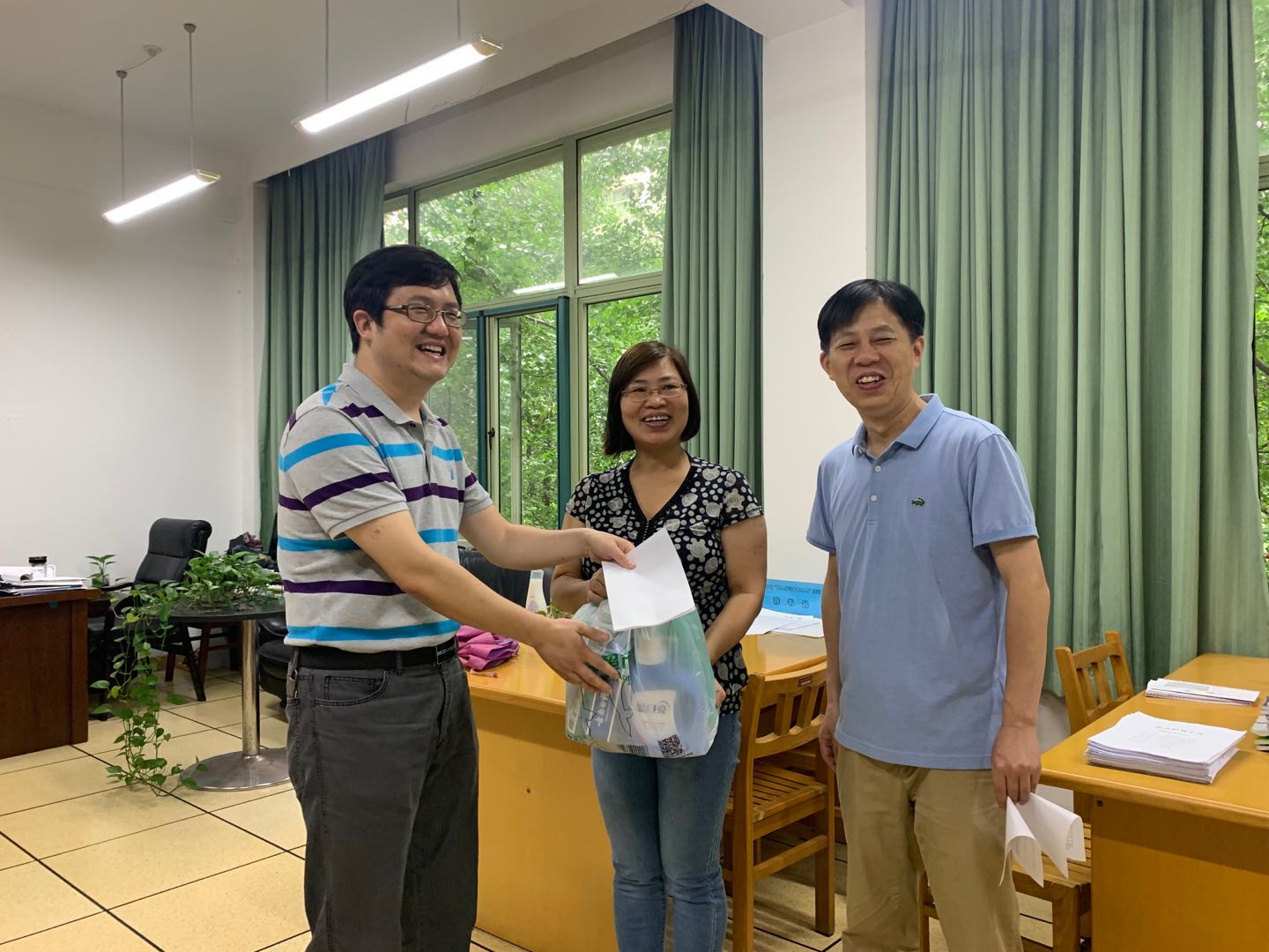 为了给炎炎夏日开展短学期教学实践工作的教师和坚守工作岗位的行政管理人员送上学院的关心和慰问。太阳成分工会组织开展暑期“送清凉”活动,学院党政班子成员参加活动,代表学院为坚守工作岗位的教职员工送上了分工会准备的消暑慰问品。
