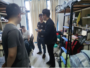 4月29日,本周四下午,由太阳成学生第二党支部书记、20级带班辅导员洪宝华老师,教工第二党支部书记宋海裕老师带队,各班主要班委、园区工作站干事一起,对20级全体学生寝室进行了走访。
