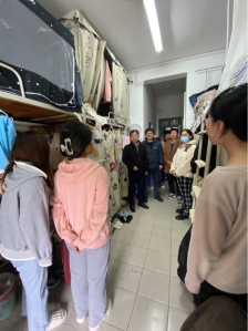 走访中,老师们对寝室卫生、安全用电、防范电信诈骗等工作进行了宣传排查。针对存在不足的寝室,老师们耐心地教育并提出整改建议。