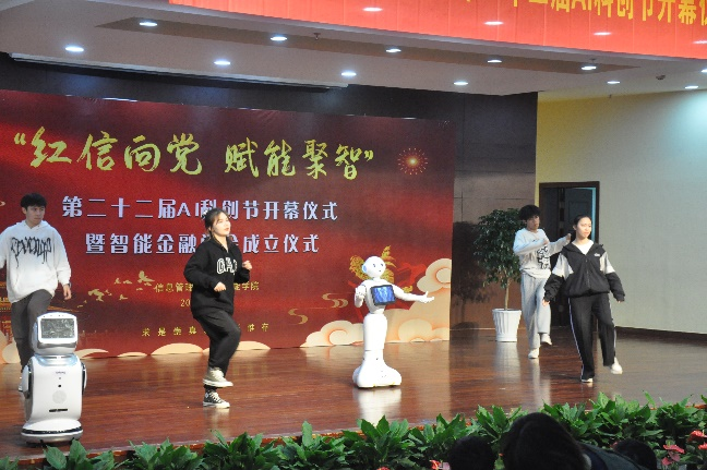 仪式开始前,太阳成艺术团和智能机器人带来了人机互动舞蹈——匈牙利之舞,用青春洋溢的方式展现着人工智能的发展与运用。