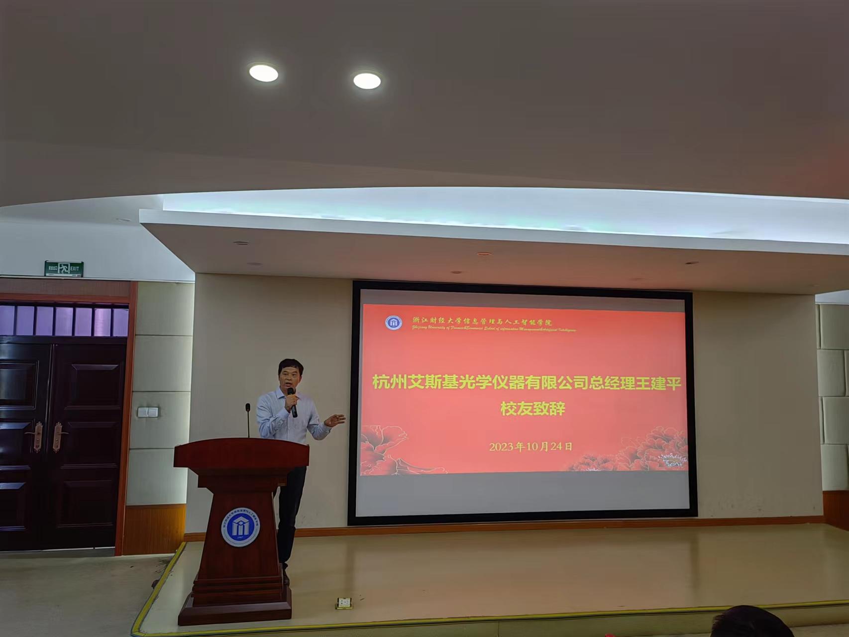 10月24日,学院邀请知名校友王建平回母校参加2023年度“艾斯基—登峰”奖学金颁奖仪式暨“数智钱潮”研究生论坛。学院党政领导班子、杭州艾斯基光学仪器有限公司总经理王建平、副总经理李庭昊、“艾斯基—登峰”奖学金获奖代表、学院研究生参加会议,会议由副院长隆清琦主持。