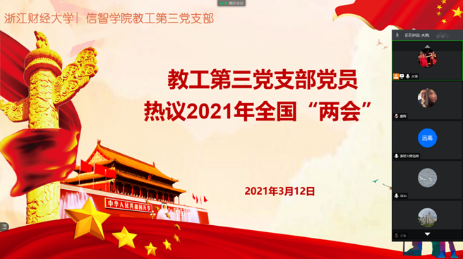 2021年3月5日上午,十三届全国人大四次会议在北京人民大会堂开幕,习近平等党和国家领导人出席大会,国务院总理李克强作政府工作报告。3月12日,信息管理与人工智能学院教工第三党支部组织党员收听收看李克强总理作政府工作报告,热议“两会”,高度评价教育领域改革发展成就。