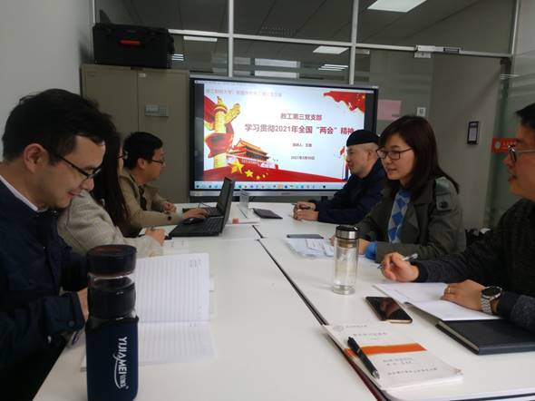 2021年3月初,第十三届全国政协和人大第四次会议分别在北京召开。两会闭幕之后,信息管理与人工智能学院教工第三支部于9号楼301D线下深入学习贯彻了全国两会精神。