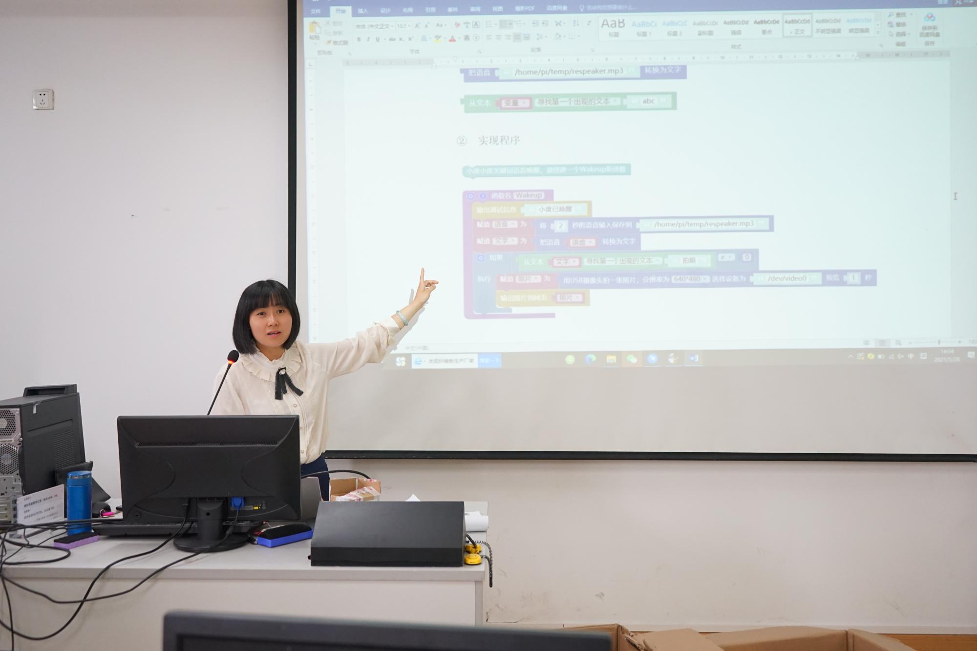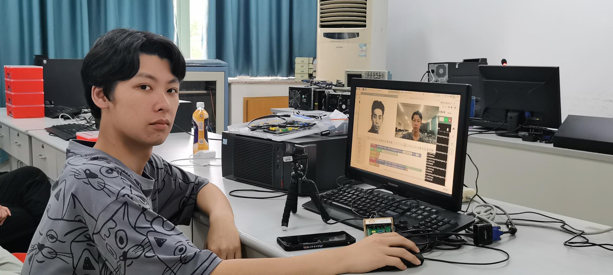 猜猜看你和哪一位党史人物的容貌最为相似?想学如何用灯带“动感作画”吗?近日,在信息管理与人工智能学院的实验室里,朱凌老师正在给学生们上《智能时代》通识教育课。由于通识课程的授课对象是文、理、工科学生兼有,涵盖了全校各个学院,学生们编程基础不一,有些甚至是零基础。因此,借着庆祝“建党100周年”和学院开展党史学习教育的契机,朱凌老师大胆尝试教学改革,制定创新教学方案,积极探索产学合作协同育人的人才培养新模式,在人工智能通识教育中将党史知识与专业知识技能融合,设计了一系列人脸识别、语音识别、文字识别、机器翻译、物联网控制、智能硬件等虚拟仿真实验教学案例,帮助学生们更形象更真切地体验人工智能时代中信息物理空间融合的程序设计在我们工作、学习、生活中的强大应用,也让党史教育以更接地气的方式走近学生。