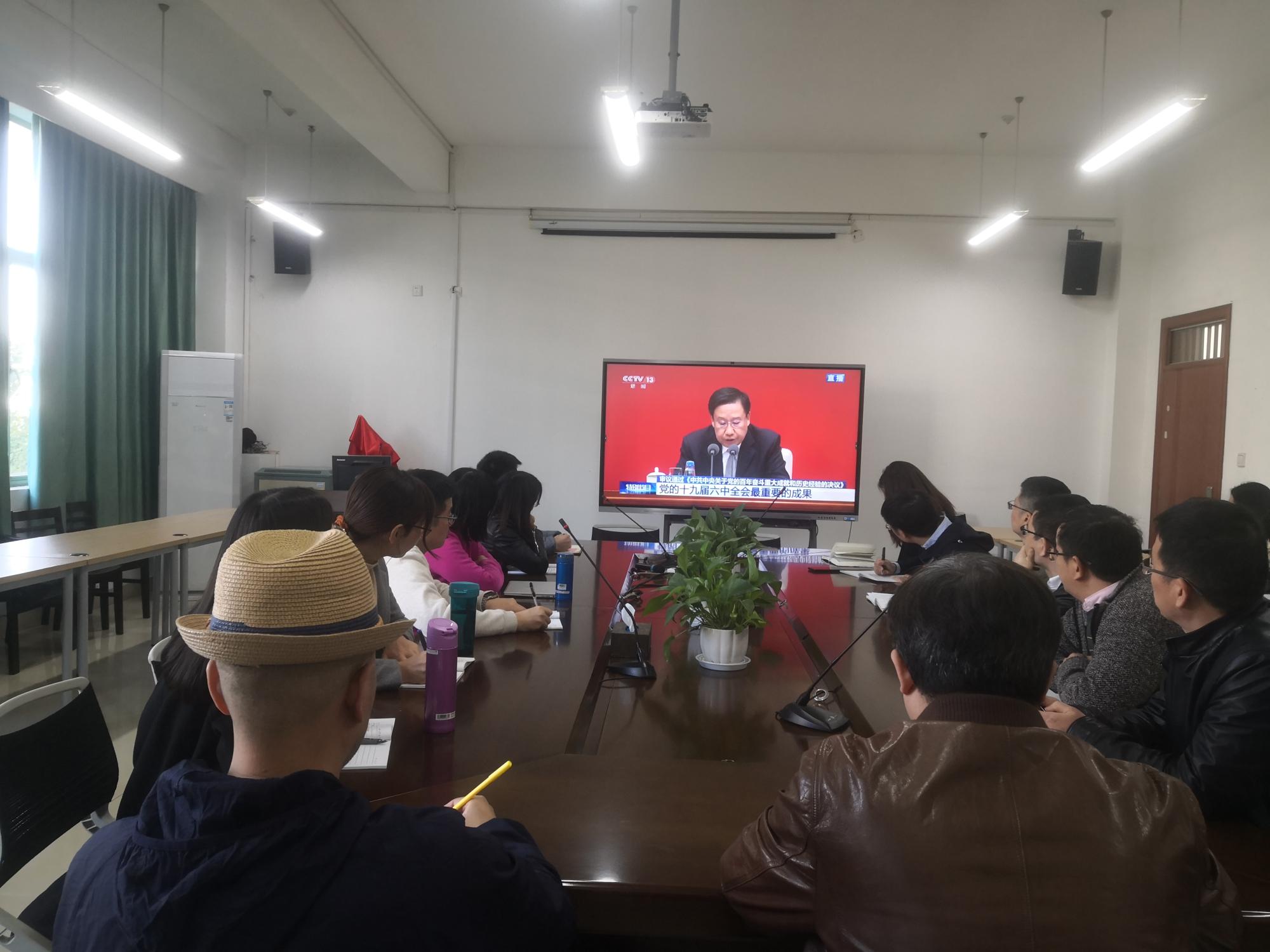11月12日,太阳成党委组织师生收听收看党的十九届六中全会精神。上午10点,太阳成党委领导班子、理论中心组成员、党支部书记、教师代表以及全体党员在学校集中收看新闻发布会,部分外出访学党员也准时上线收看新闻发布会。党的十九届六中全会全面总结了党的百年奋斗重大成就和历史经验,为我们党员开拓创新、圆伟大复兴中国梦指明了前进方向。党员在学习完全会精神后都颇有感触:
