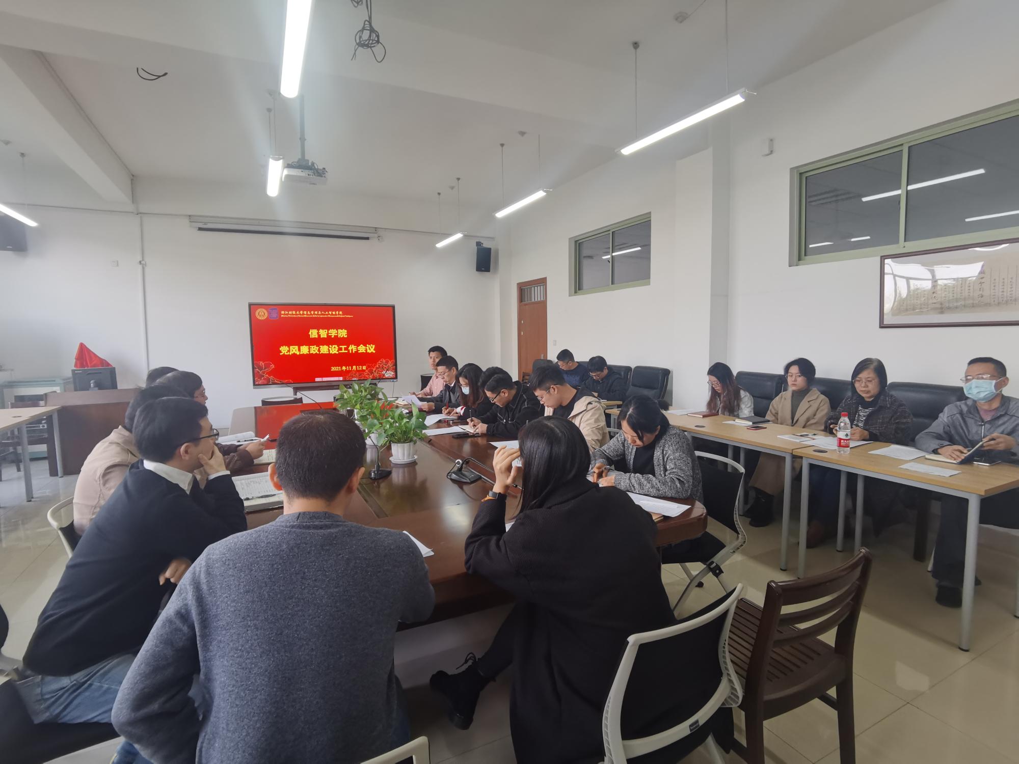 11月12日,信息管理与人工智能学院召开党风廉政建设工作会,传达了学校党委、纪委工作会议精神,通报了学院“清廉桌面”系列活动的开展情况以及“一清理两专项”工作的阶段性成果,分析了当前存在的问题,明确了学院党风廉政建设工作的重点目标和具体工作。学院党政领导班子、纪委成员以及全体行政工作人员参加了会议,会议由党委书记徐奇伟主持。