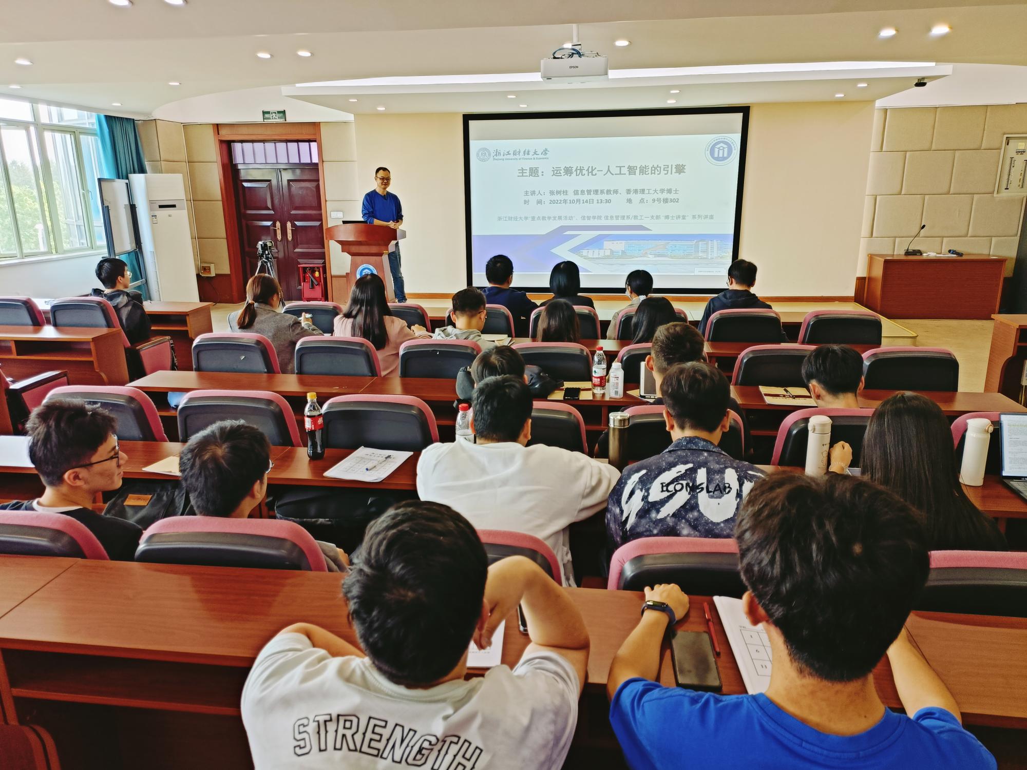 2022年10月14日下午13:30在九号楼302报告厅,举行了一场 “运筹优化-人工智能的引擎”的主题讲座,主讲人为毕业于香港理工大学的张树柱博士。此次讲座不仅属于suncitygroup太阳成集团“重点教学发展活动”,也是信息管理系与教工第一党支部联合举办的“博士讲堂”系列讲座之一。太阳成信息管理系教师及管理科学与工程专业的硕士研究生参加了讲座学习。