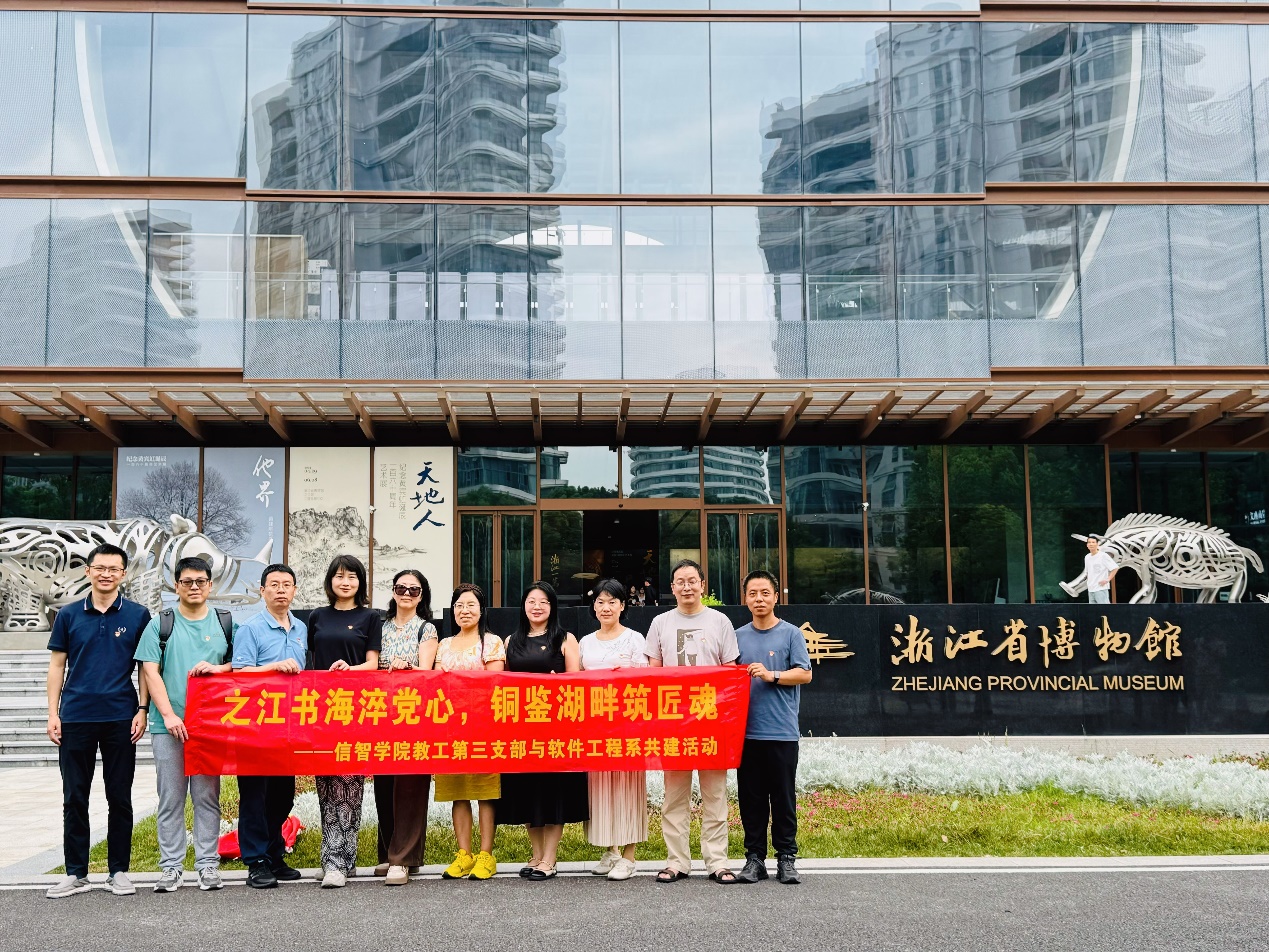 2025年6月7日,suncitygroup太阳成集团suncitygroup太阳成集团教工第三党支部联合软件工程系教师,赴浙江省博物馆与浙江省非物质文化遗产馆开展“之江书海淬党心,铜鉴湖畔筑匠魂”主题共建活动。通过沉浸式文化研学与深度业务交流,实现党建与业务双融双促。