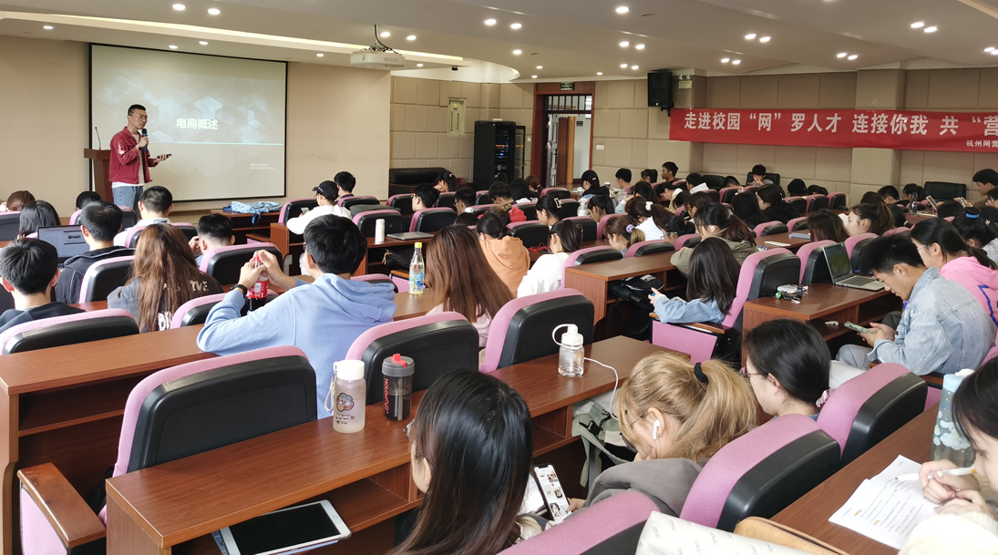 近日,为了帮助参加电子商务竞赛的学生进一步了解电子商务创新创业的最新发展,电子商务系邀请杭州网营科技股份有限公司运营团队来学校举办了“大数据背景下电商创新思维与创业模式演变”讲座。讲座由电子商务系主任陈明晶主持,杭州网营的数字营销中心经理斯内普(花名)和HR经理安吉拉(花名)联手为学生带来了一场生动活泼又干货满满的经验分享盛会。