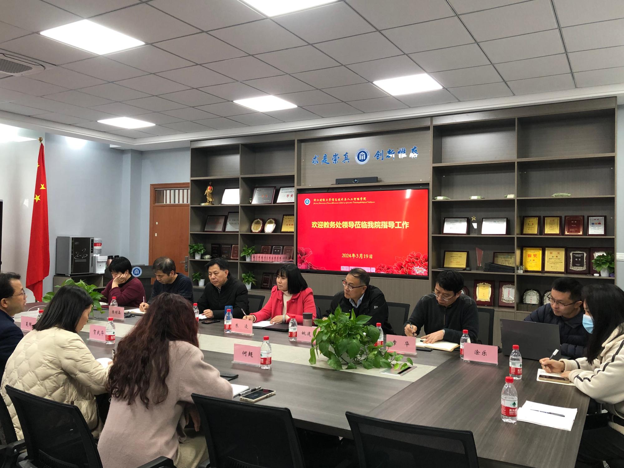 3月19日,校教务处处长贺武华一行赴太阳成就人工智能通识教育及工程认证开展调研指导,教务处副处长张少华以及教务处夏晖、孙静、何超三位老师随行,学院院长张帅、副院长朱凌、院长助理陈明晶、人工智能领域专家姚建荣、实验中心主任章华、人工智能通识课负责人刘亚楠、及工程认证负责人涂乐参加了会议,会议由学院院长张帅主持。