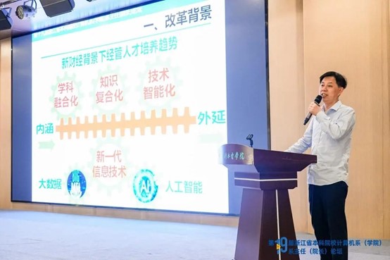 本届论坛还邀请到南京大学袁春风教授、杭州电子科技大学党委书记吴卿教授、浙江大学计算学院党委书记吴飞教授、浙江工业大学王万良教授、浙江大学百人计划研究员申文博、浙大城市学院计算机学院教授颜晖教授、湖州师范学院研究生院院长祁亨年教授、浙江师范大学计算机科学与技术学院副院长周昌军教授等计算机领域教育专家。专家们分别从系统能力培养、人工智能人才培养、人工智能通识教育、“‘101计划’与地方高校计算机专业建设”和“人工智能+(学科交叉)”等不同主题发表专题报告。