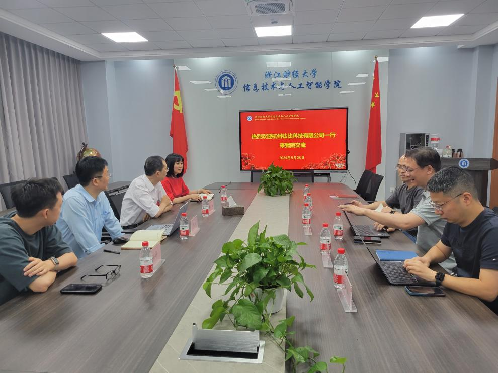 2024年5月28日,杭州钛比科技有限公司陆震、陈俊丰一行来太阳成进行交流。该公司专注于为学校提供物联网、工业互联网、人工智能等课程和实训解决方案。太阳成教学院长朱凌、办公室主任徐吉锋、实验中心副主任姜海银、人工智能与物联网方向骨干教师张后旗、张威、杨泽等参会交流讨论。