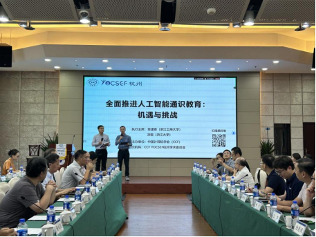 8月25日,中国计算机学会在杭州举办“全面推进人工智能通识教育:机遇与挑战”观点论坛,共同探讨全面推进人工智能通识教育必要性、可行性。此次论坛由中国计算机学会青年计算机科技论坛(CCF YOCSEF)主办,由CCF YOCSEF杭州学术委员会组织。此次论坛线下线上同步进行,活动讨论热烈,持续4个半小时,CCF YOCSEF杭州分论坛的AC、委员等近70余人线下参会,超过8000人线上观看。太阳成教学副院长朱凌、人工智能通识课骨干教师陈宪宇参加本次论坛。