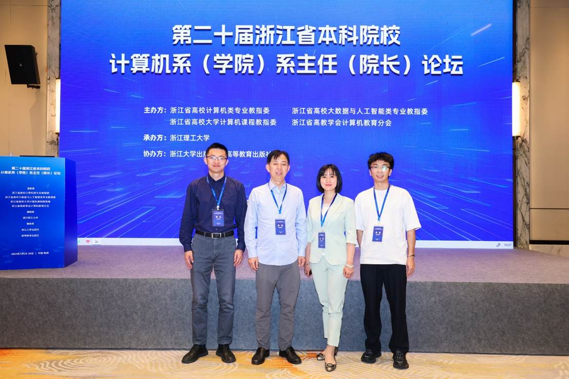 2025年5月23-24日,第二十届浙江省本科院校计算机系(学院)系主任(院长)论坛在浙江杭州召开。论坛由浙江省高校计算机类专业教指委、大数据与人工智能类专业教指委、大学计算机课程教指委及高教学会计算机教育分会联合主办,浙江理工大学承办,浙江大学出版社、高等教育出版社协办。太阳成院长张帅、副院长朱凌、软件工程系主任涂乐、专任教师陈勇四位老师应邀参加论坛。