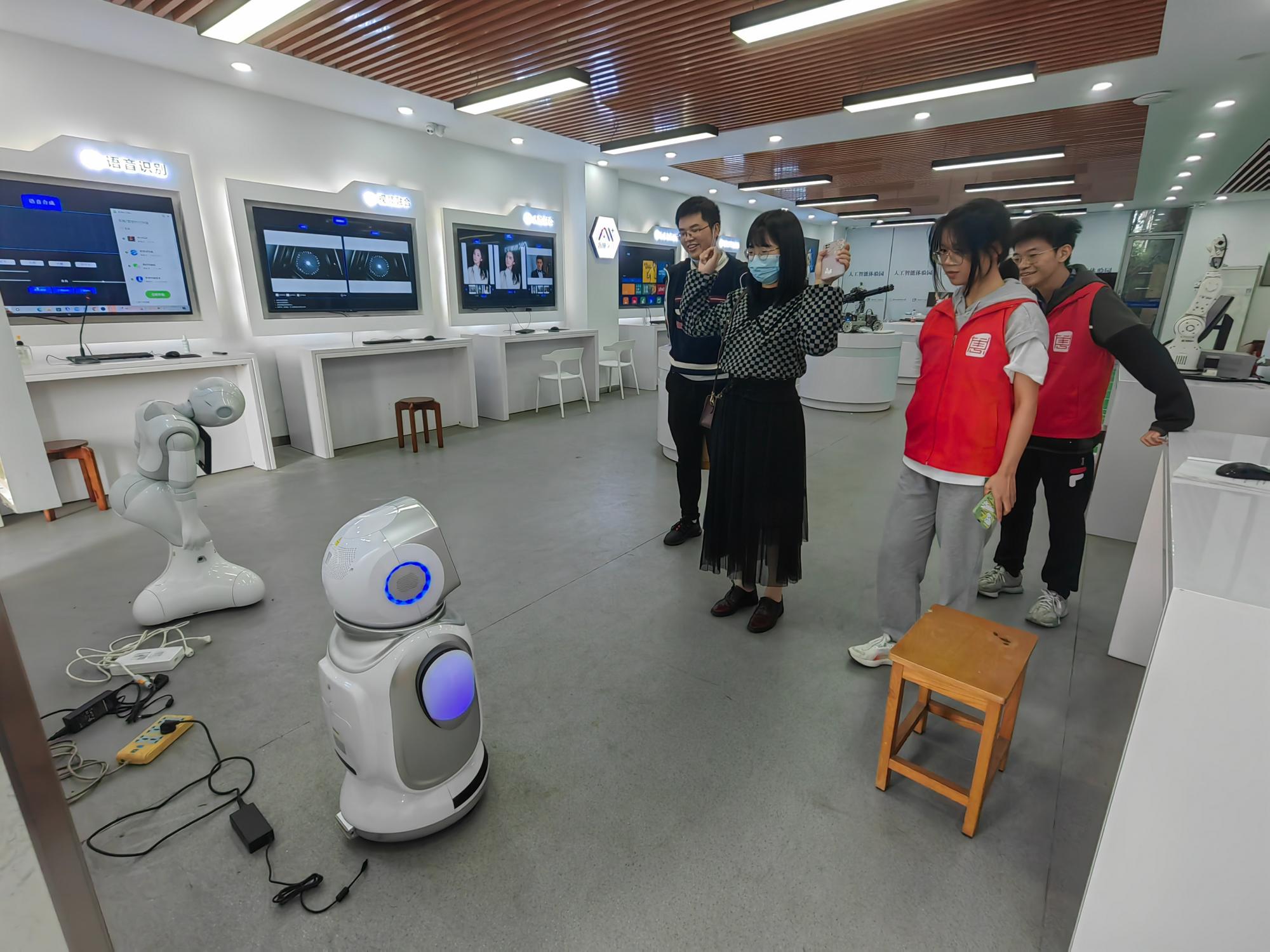 在人工智能体验园,“‘信’聚初心,‘智’创未来系列活动之‘AI+力‘人工智能创新成果体验”吸引了许多校友前来。在志愿者的引导下,返校的校友们在这里体验VR,看会说会跳和会在赛道上奔跑的机器人。母校变化如此之大,科技发展如此之快,让他们感受到信息技术和人工智能的强大活力,也为太阳成的专业发展感到无比自豪。