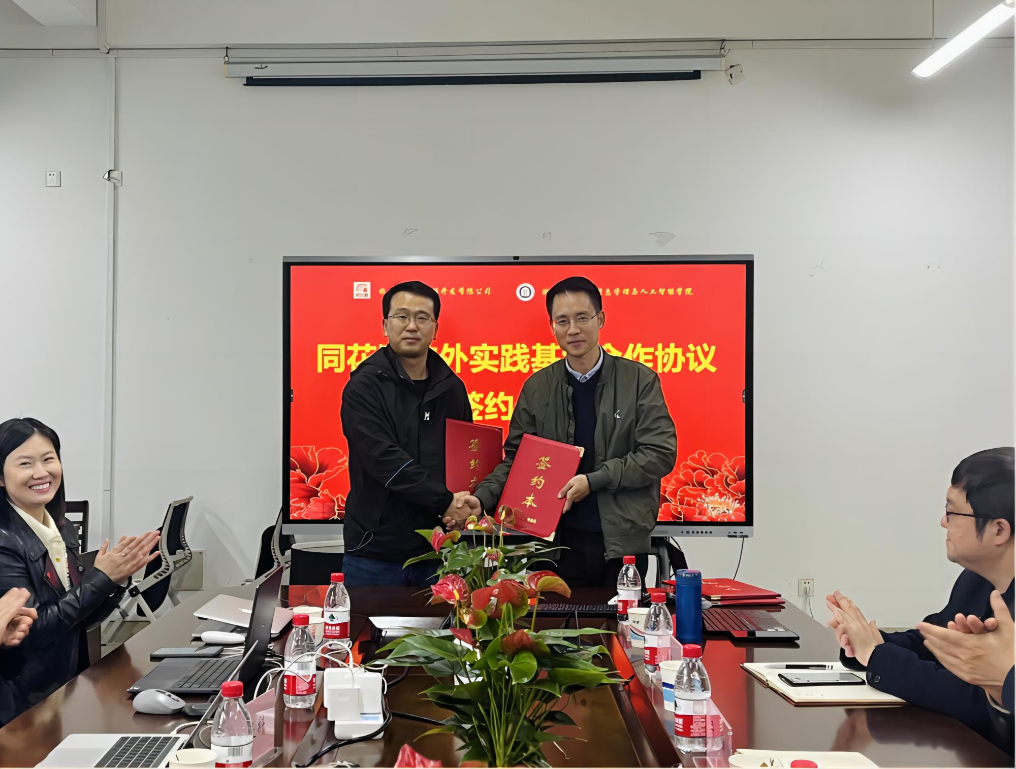 教学院长隆清琦老师与李振科经理分别代表双方签订《合作框架协议》及《金融大数据与智能量化交易实践基地协议书》。