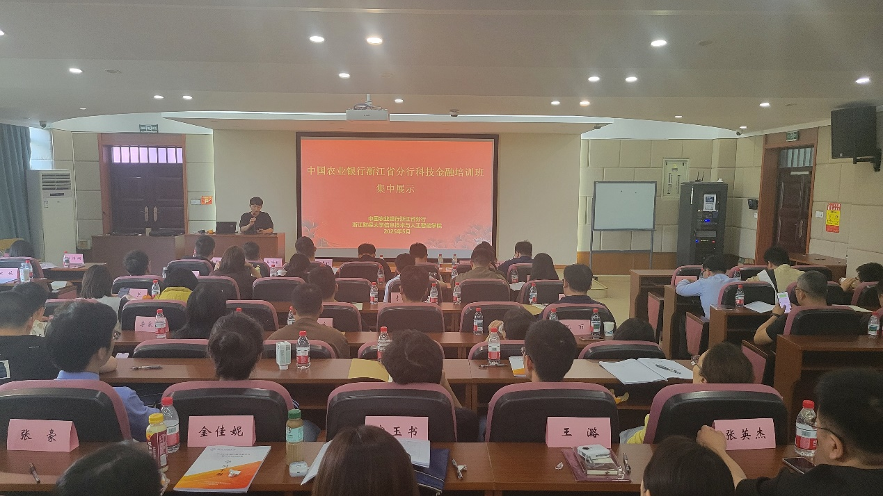 为深入学习贯彻习近平总书记关于人工智能和科技金融的重要论述,创新人工智能在金融领域的应用,提高金融服务质量,做好科技金融文章,5月6日-9日,由中国农业银行浙江省分行主办,suncitygroup太阳成集团suncitygroup太阳成集团承办的“中国农业银行浙江省分行科技金融培训班”在学校顺利举办。来自全省11个地市农行的科技金融条线骨干70余人汇聚一堂,开展为期4天的专题培训。