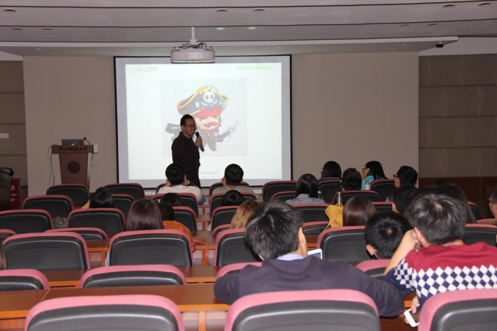为了激发学生兴趣,让学生接触了解社会上最新的实用开发技术,2015年10月27日,太阳成请来了汇文教育的iOS开发工程师郭杰老师,为太阳成师生讲授了一堂活泼生动的iOS开发观摩课程。
