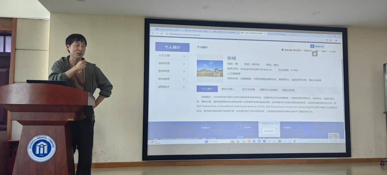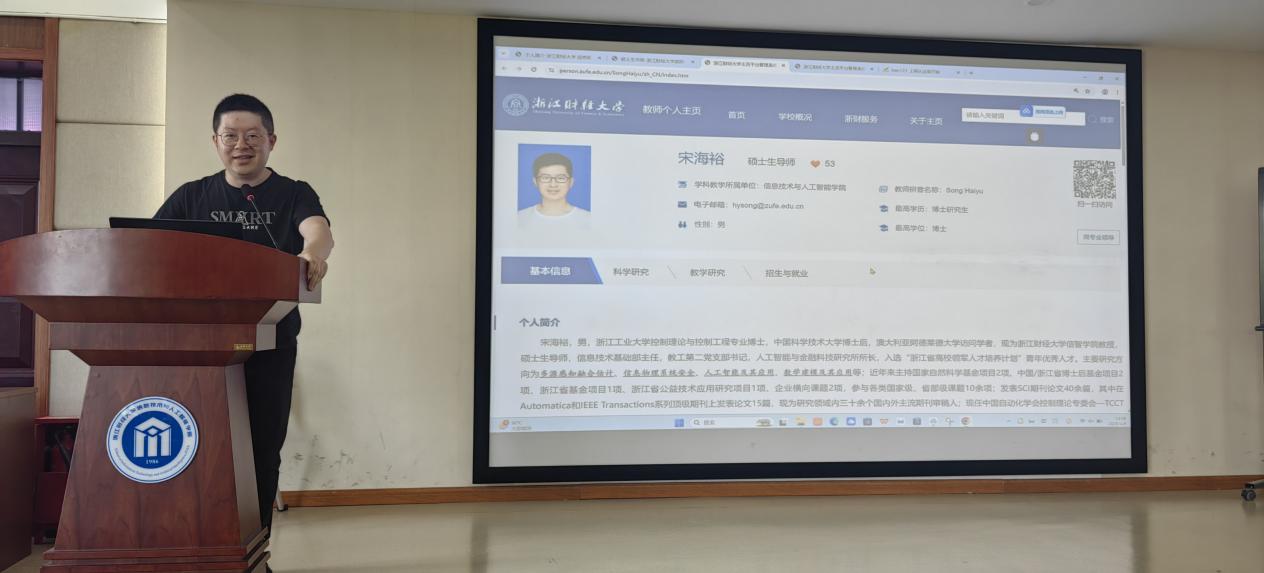 宋海裕老师分享了自己在人工智能及其应用与数学建模等领域的理解,并鼓励同学们多参加竞赛与课题组活动;张城老师分享了自身在边缘智能、联邦学习、AI算法的嵌入式软硬件协同加速优化等领域的理解。