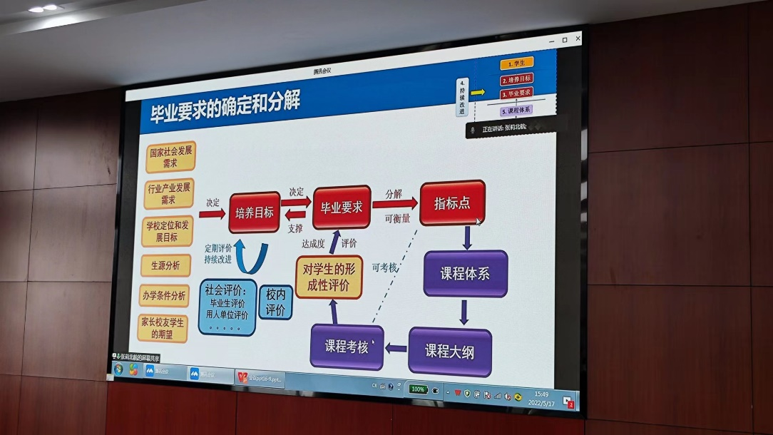 张莉教授首先介绍了工程教育专业认证的标准框架,讲解了工程教育专业认证核心理念,强调了专业认证的“主线”是坚持面向产出,“底线”是建立面向产出的内部评价机制。然后结合专业自评报告,重点阐释了专业认证的标准体系以及撰写自评报告的要点。最后结合实例,把专业认证中的常见问题做了详细解答。