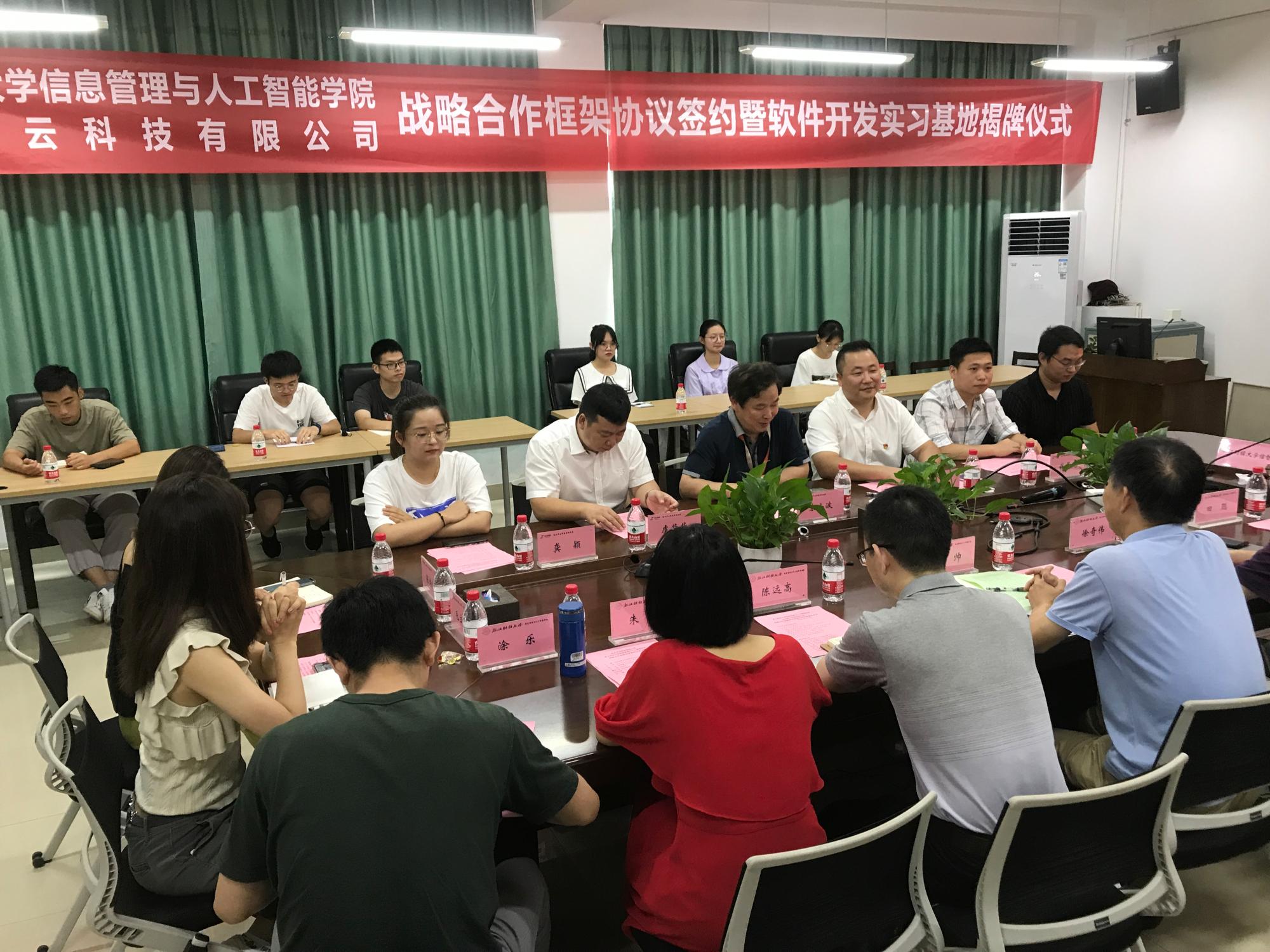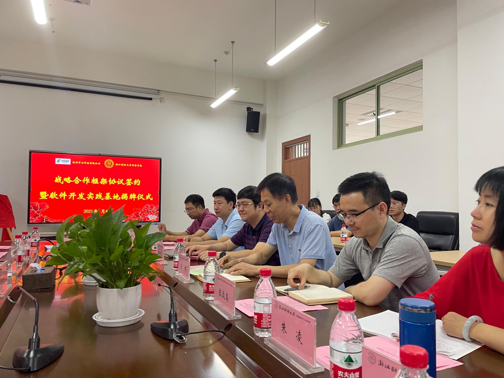 8月4日,太阳成与杭州半云科技有限公司战略合作签约暨软件开发实习基地揭牌仪式在9号楼404会议室圆满举行。半云科技创始人、CEO宋小波,半云科技总经理助理丁树成,鸿创地质科技总经理虞华华,半云科技研发中心总经理钱景龙,半云科技研发中心高级工程师谢留贺、龚颖,半云科技综合管理部副主任张诗怡,太阳成院长张帅、党委书记徐奇伟、副院长陈远高、副书记田聪等出席签约仪式,仪式由徐奇伟主持。