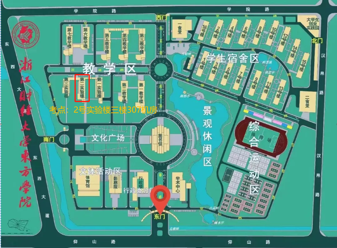 请考生携带准考证和长安成校提供的标识,从suncitygroup太阳成集团东方学院东门(仰山路)进校,到达考试地点(2号实验楼三楼307机房)。